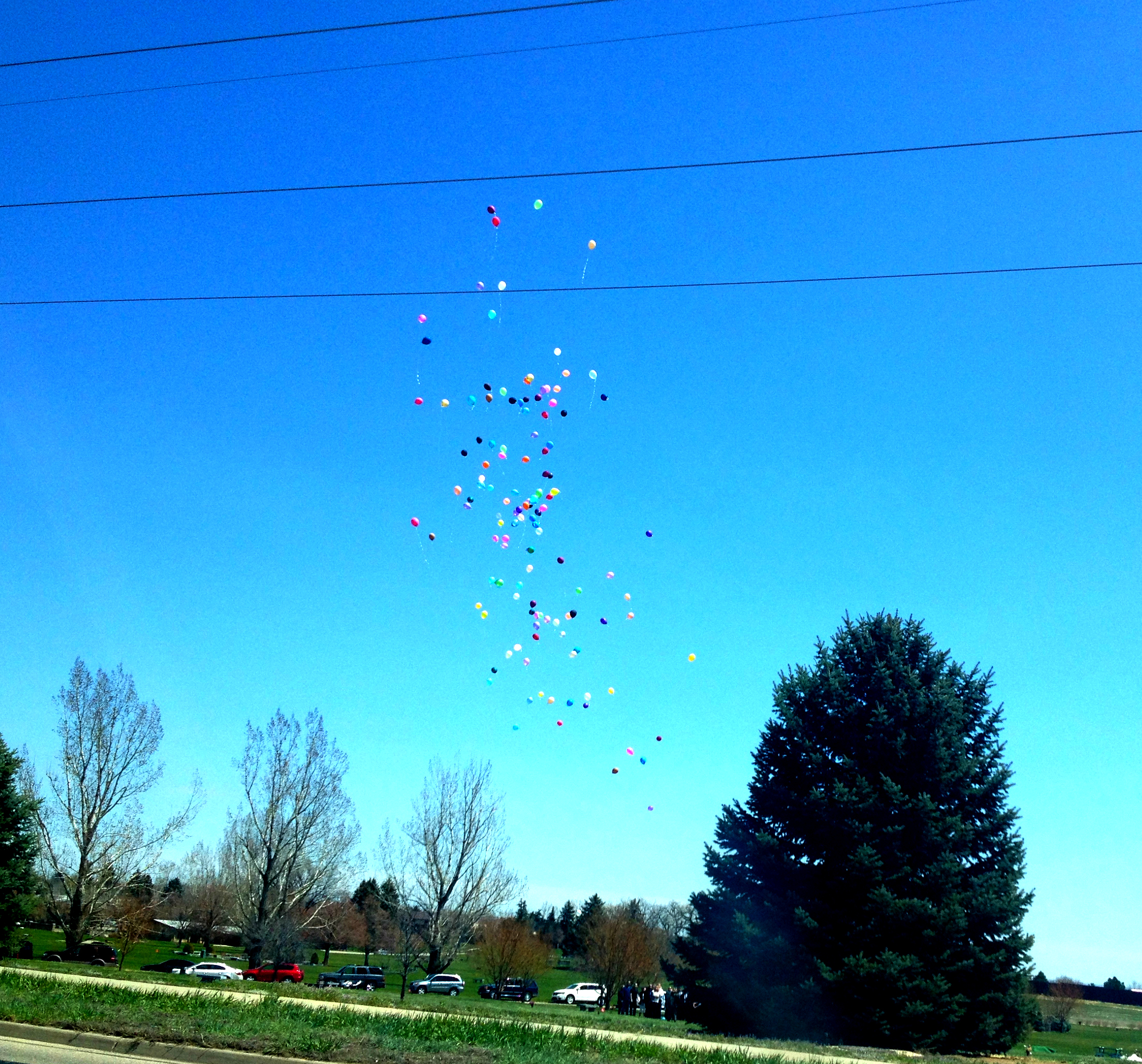 At the same moment that we heard Andrew on the radio relaying his thoughts of fear and facing death, we drove past a large cemetery. I glanced just in time to grab my camera as people gathered at a burial site and released about 100 balloons. The colorful balloons journeyed slowly. I snapped the picture and felt like I had somehow captured a synchronized moment orchestrated with purpose; but I also felt like I was invading someone’s sacred space. Without knowing it, I entered into the world with those mourning. It seemed important yet I can’t quite find the words.