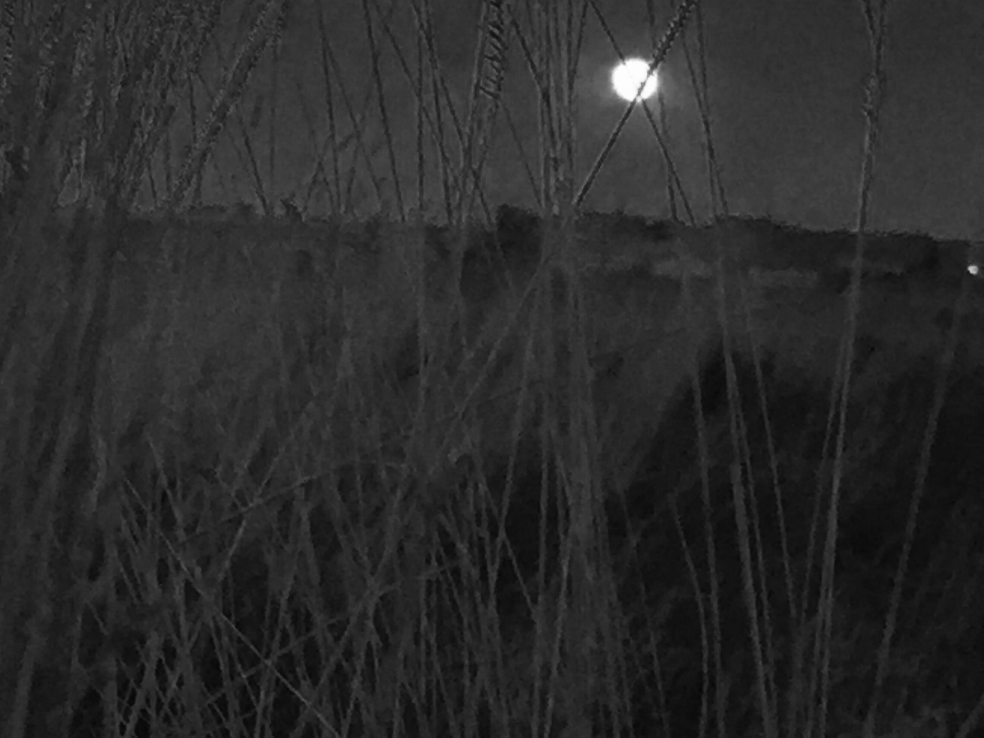 The blades of grass loom large -strong and severe as they cut the fullness of the moon.