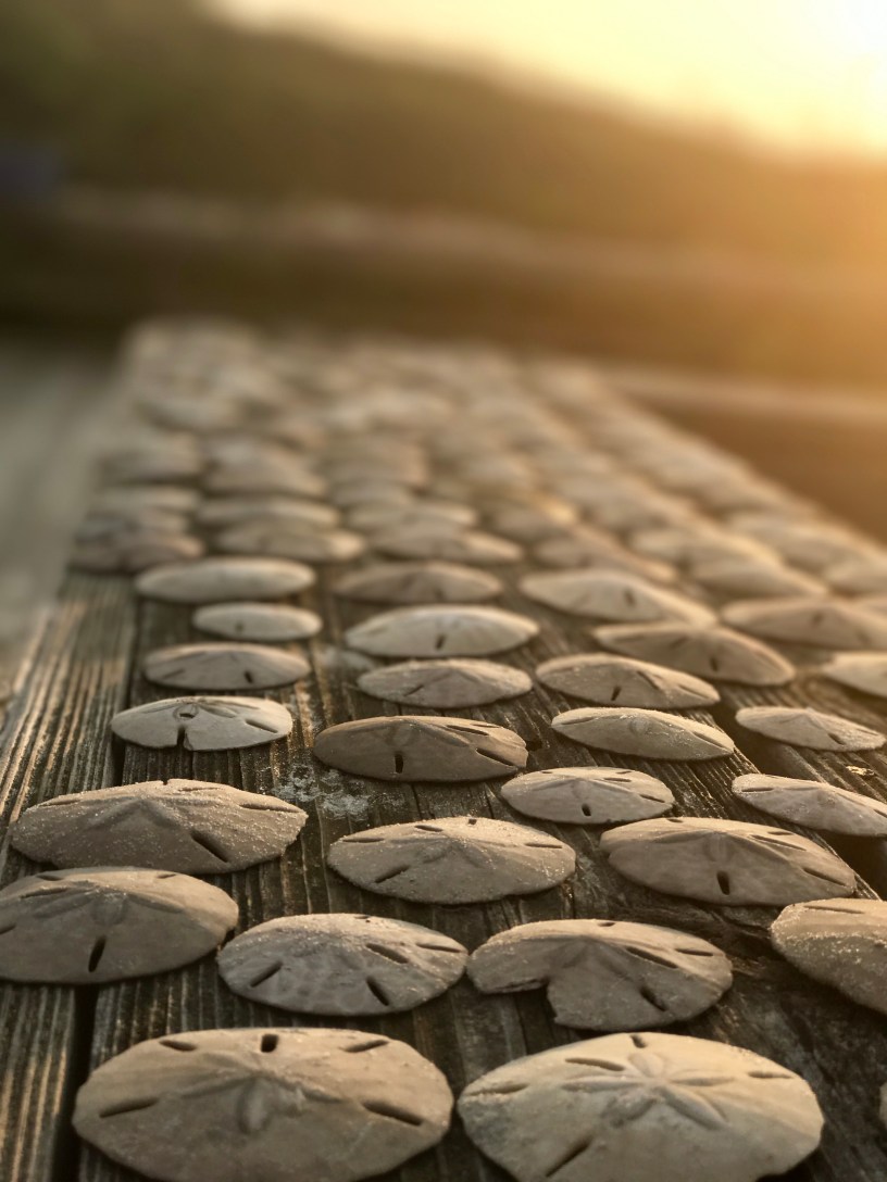 side note: we found out that if sand dollars are still in the shallow water, the best thing to do is gently put them back into a little deeper water on the ocean floor. They are alive until they are on the shore for a few minutes. You will be able to see a little movement in the slits on the dollar when they are alive and see that they are a little fuzzy. Only take the ones that have landed and been on shore without water. Here’s a great article to read about the differences between them being dead or alive. http://www.iloveshelling.com/blog/2015/03/25/how-to-identify-differences-between-live-and-dead-sand-dollars/