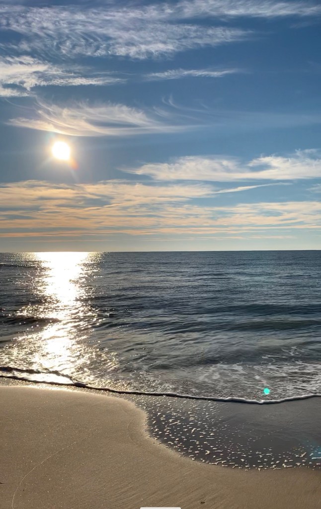 Amidst the tumble of the shell is also the tide rising in rhythm, the dolphins dancing like clockwork, the birds swooping again in the splendor of expansive baby blue.